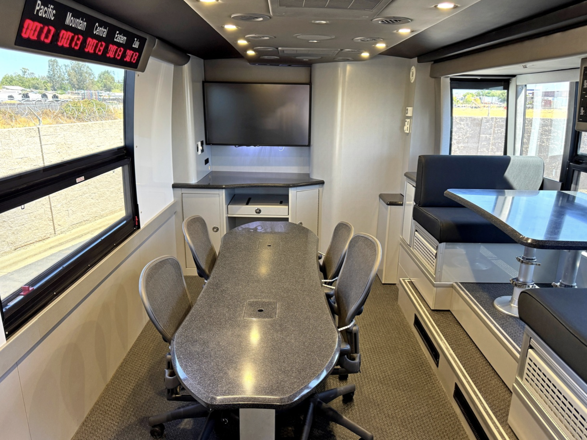 Conference/briefing area with seating and display capabilities