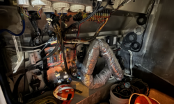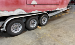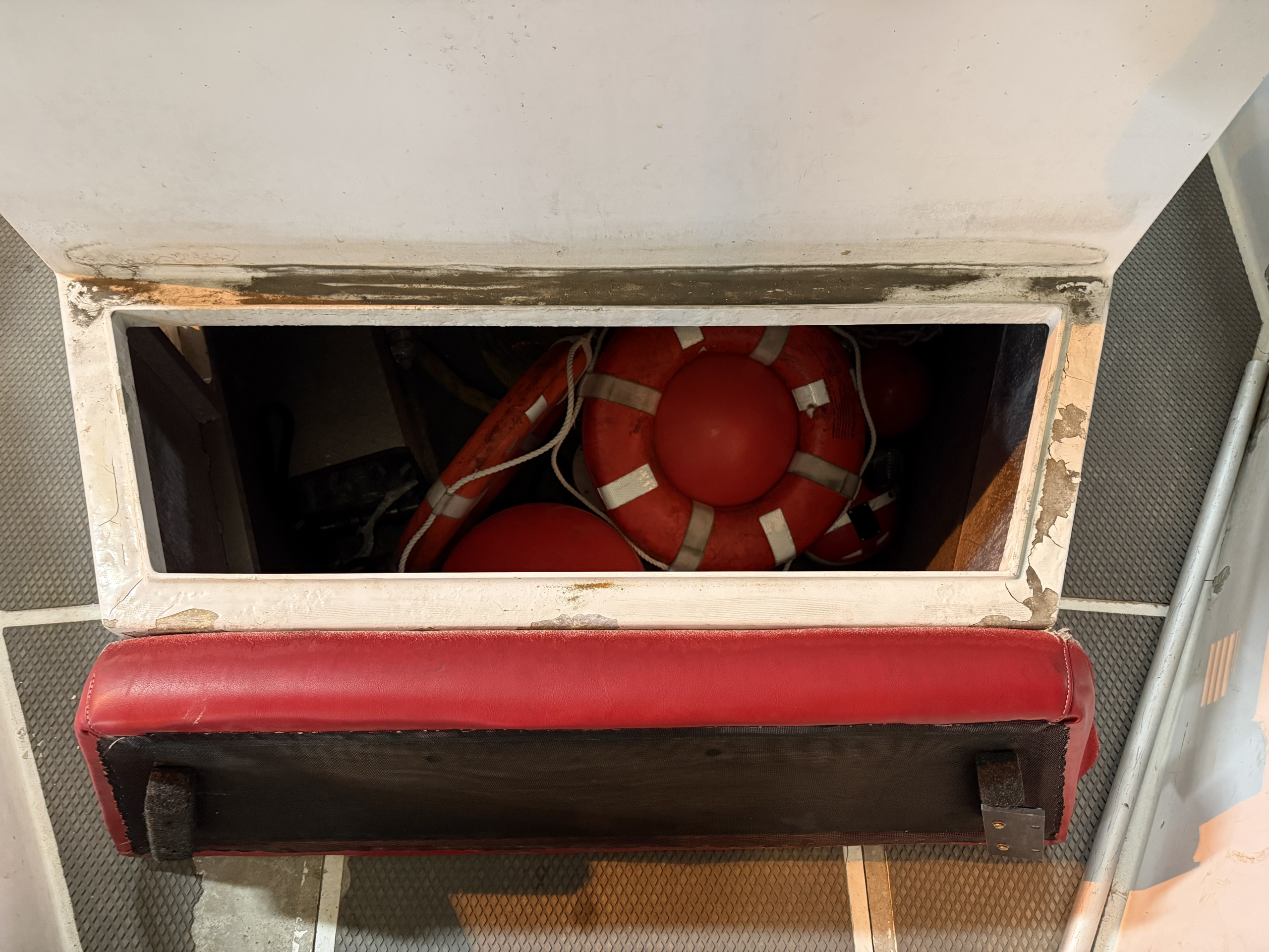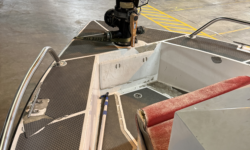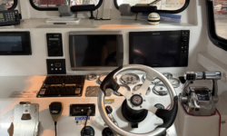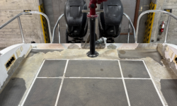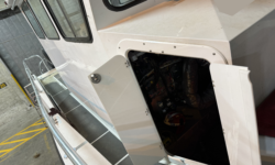 Hull Constructed to meet ABYC, ABS, Veritas and Lloyds Standards. The deck is also self bailing with the open transom design and with the side dive door opening acting as 8′ deck drains allowing any water to escape from the deck.