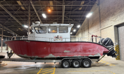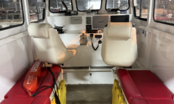 The Enclosed Pilot House design with (2) patient bunks also allows for added protection and heat and AC in foul weather and extreme sea conditions.