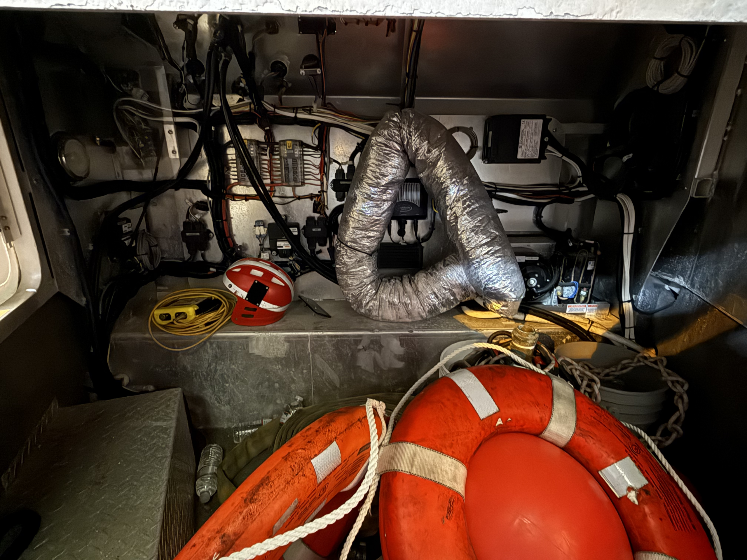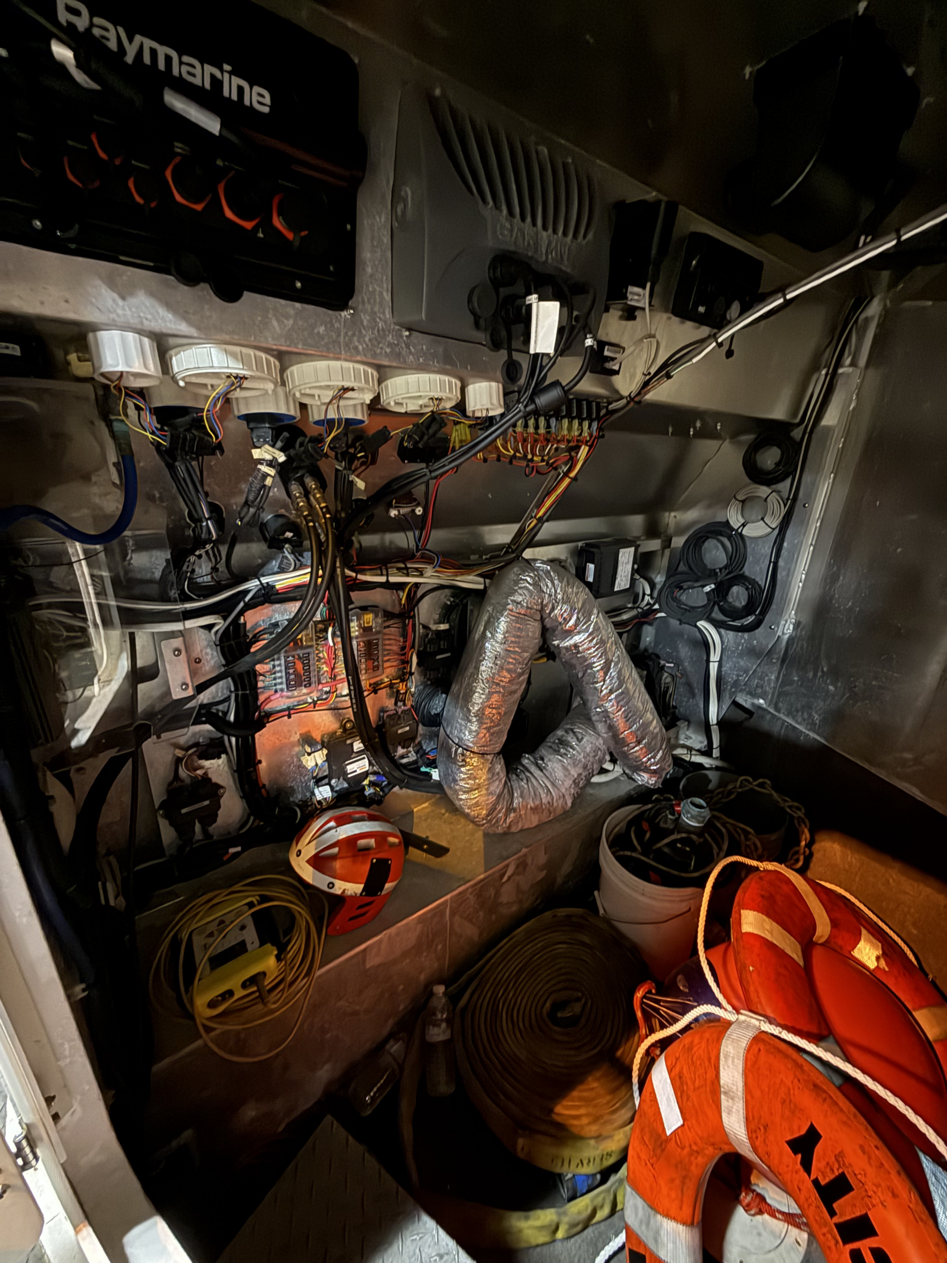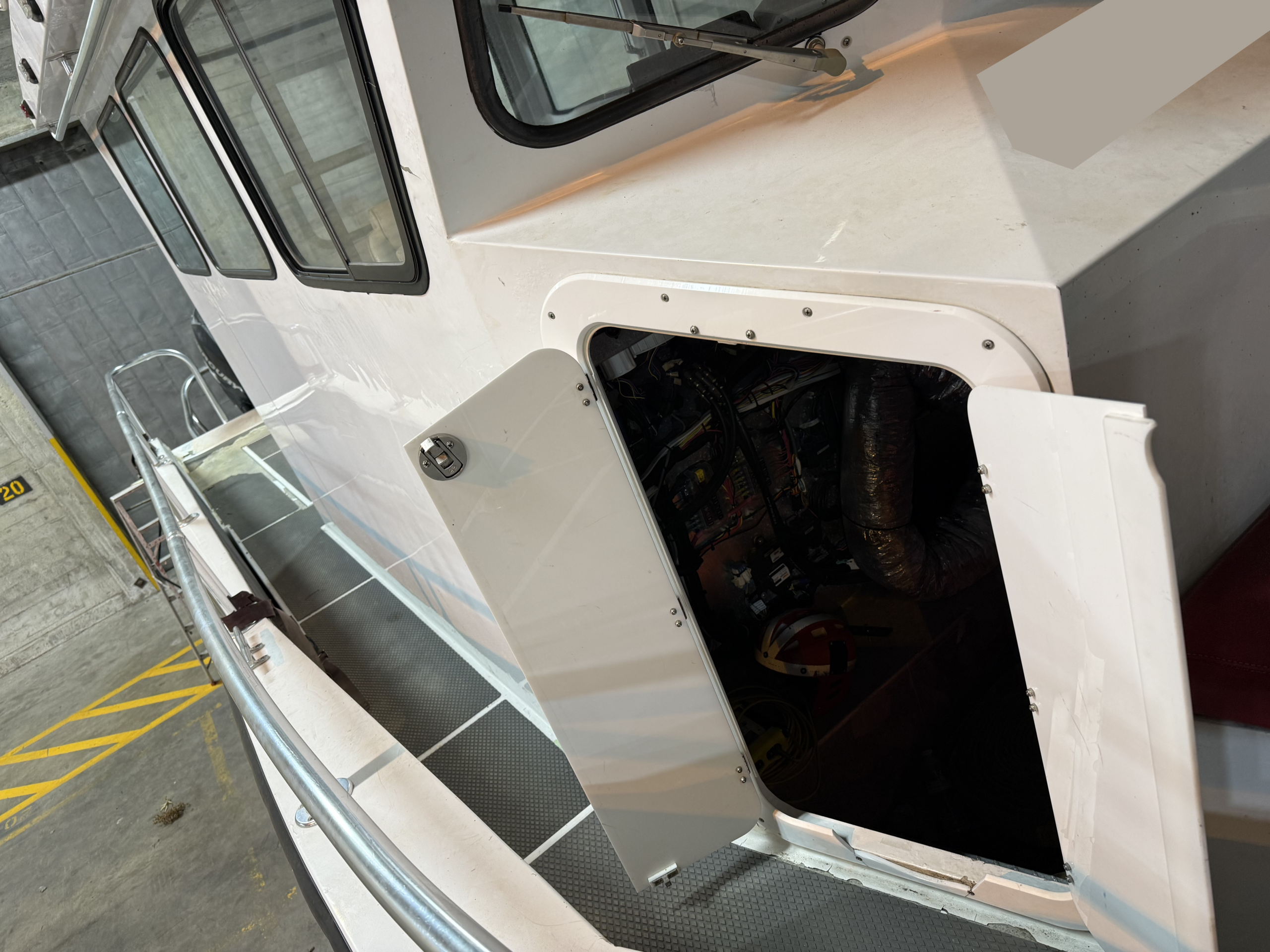Electronics : Raymarine Hybrid touch display and a Garmin GPS map 5212 display installed for FLIR, Radar, GPS, depth, speed, and navigation information. Whelen WPA series hailer and siren. FLIR M-324XP camera. Garmin closed array radar antenna on cabin roof.