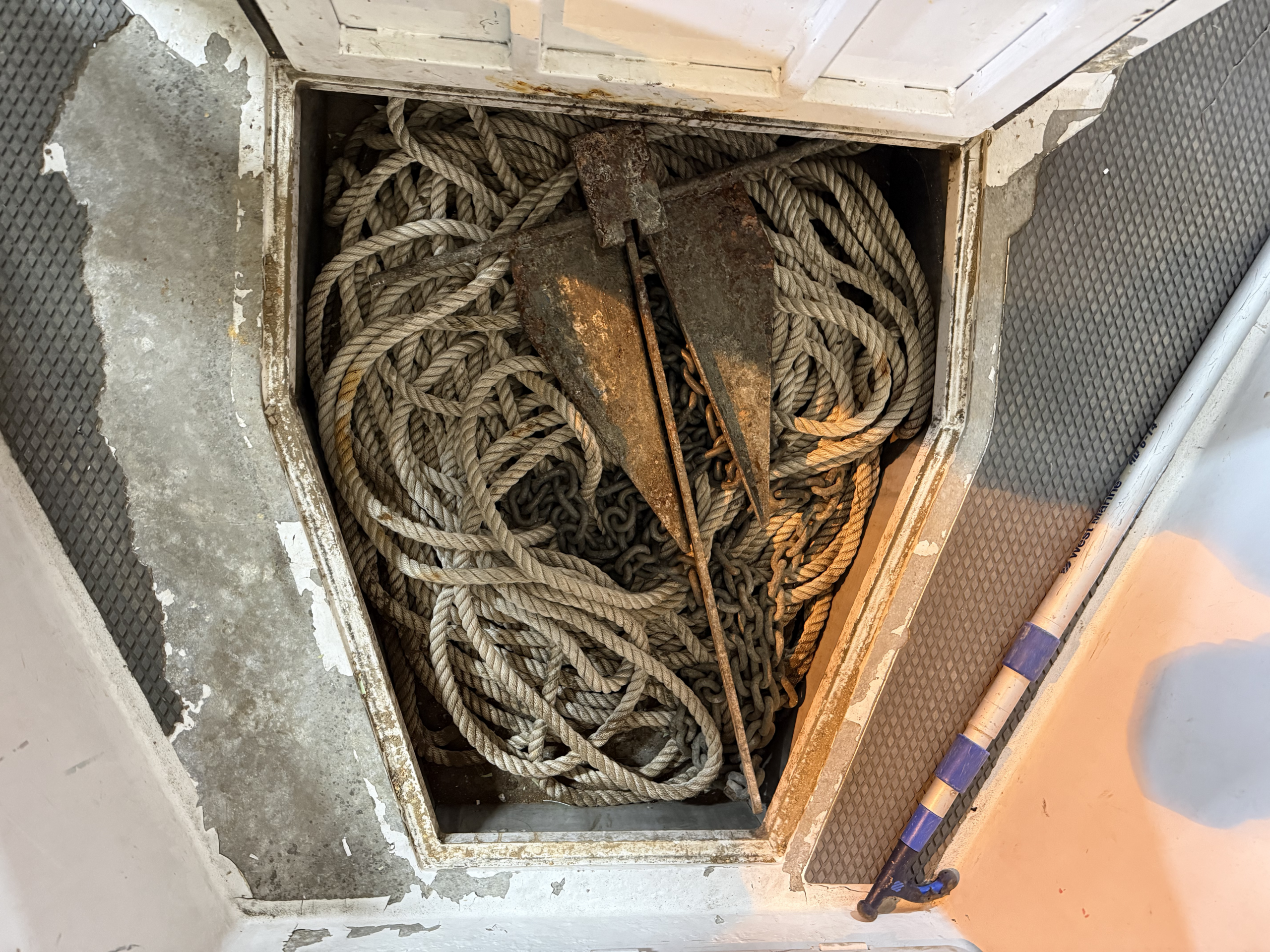 Anchor : a galvanized steel Danforth anchor with approximately 25 feet of