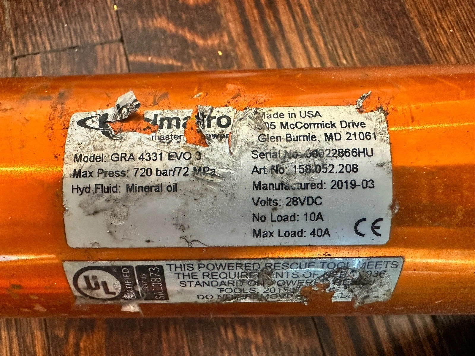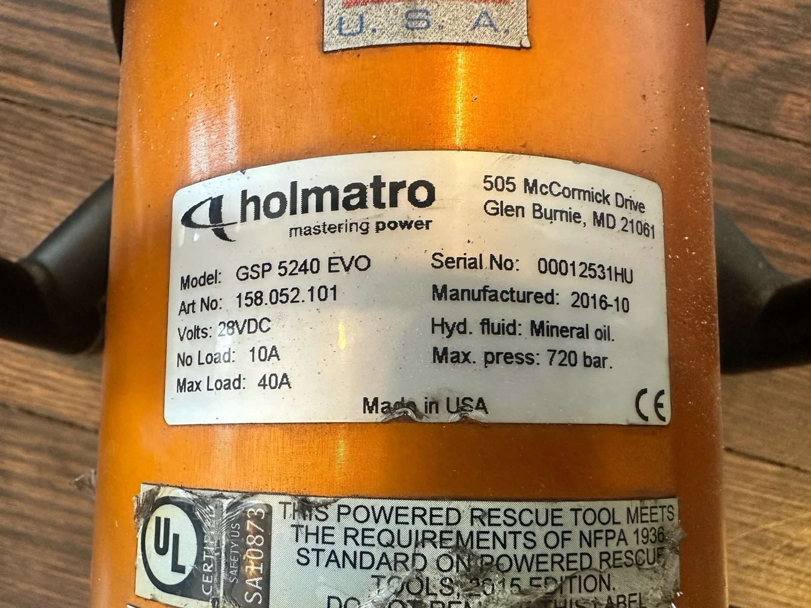 Home » Equipment » Jaws of Life and Reels » Holmatro EVO Battery 10,500 PSI Rescue Equipment (A2827)